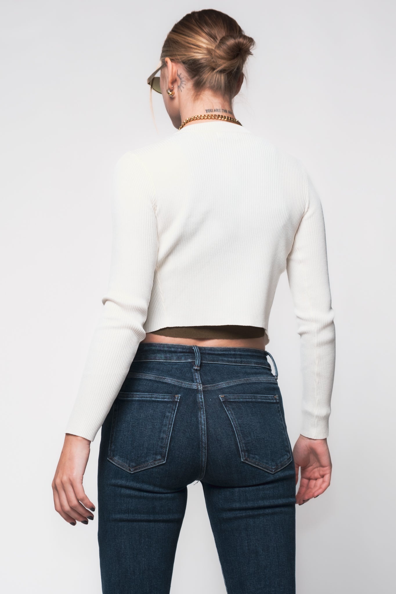 A go-with-everything shrunken fit cardi top with button closure and crewneck. Perfect for layering!