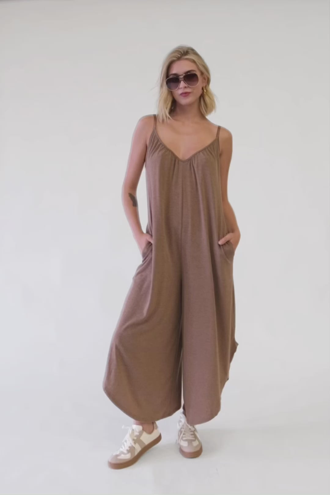 The Easy Does it Jumpsuit is crafted in a tee-shirt-soft jersey with an easy fit, slightly cropped leg, and adjustable straps. Perfect for lounging or on-the-go! Pair with sneakers or sandals! Looks great layered with a fitted tee underneath!