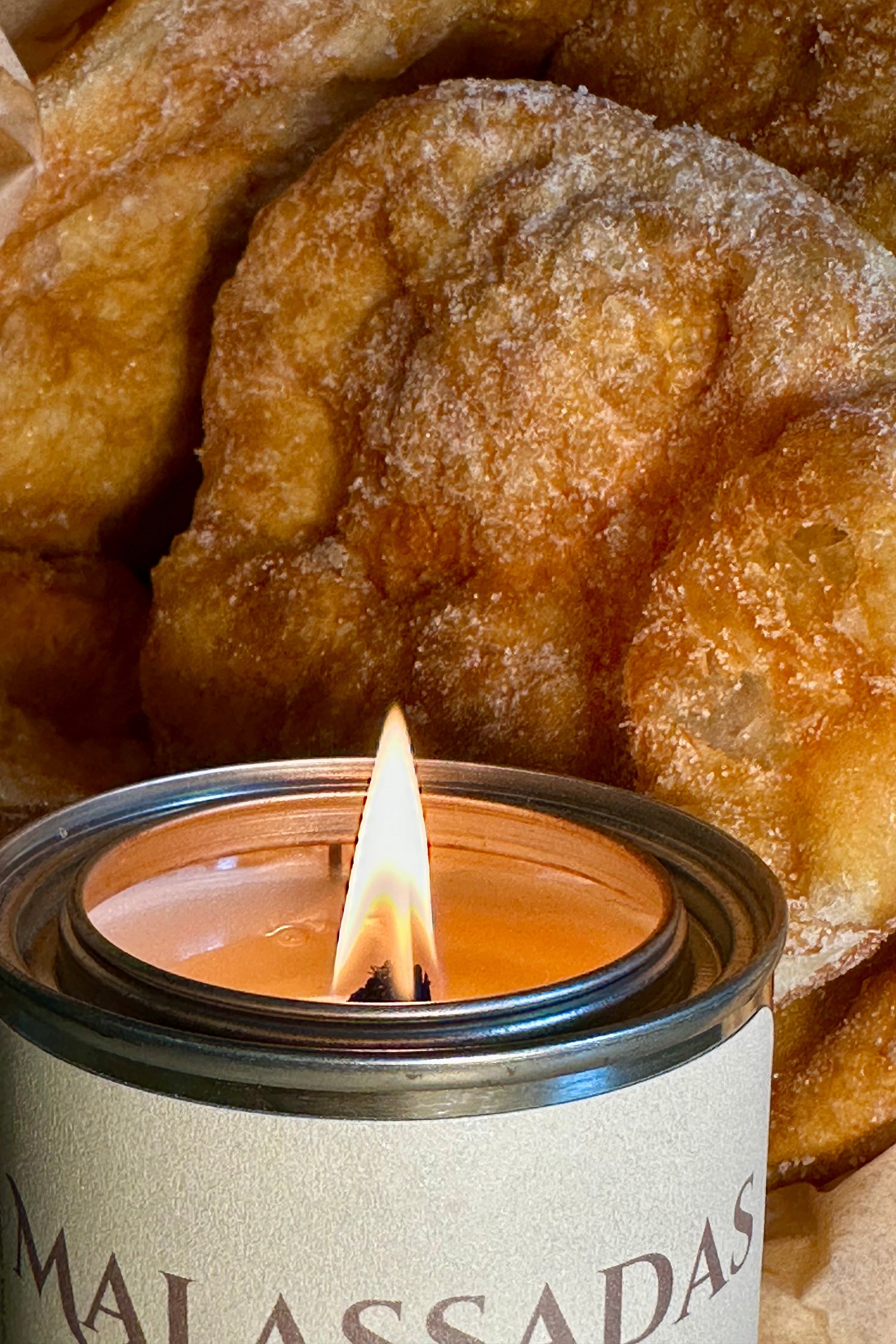 Inspired by the beloved Portuguese dessert, this candle captures the sweet comfort of freshly fried malassadas — golden dough dusted with sugar and still warm from the kitchen. A cozy blend of vanilla, cinnamon, and sugar that feels like home.
