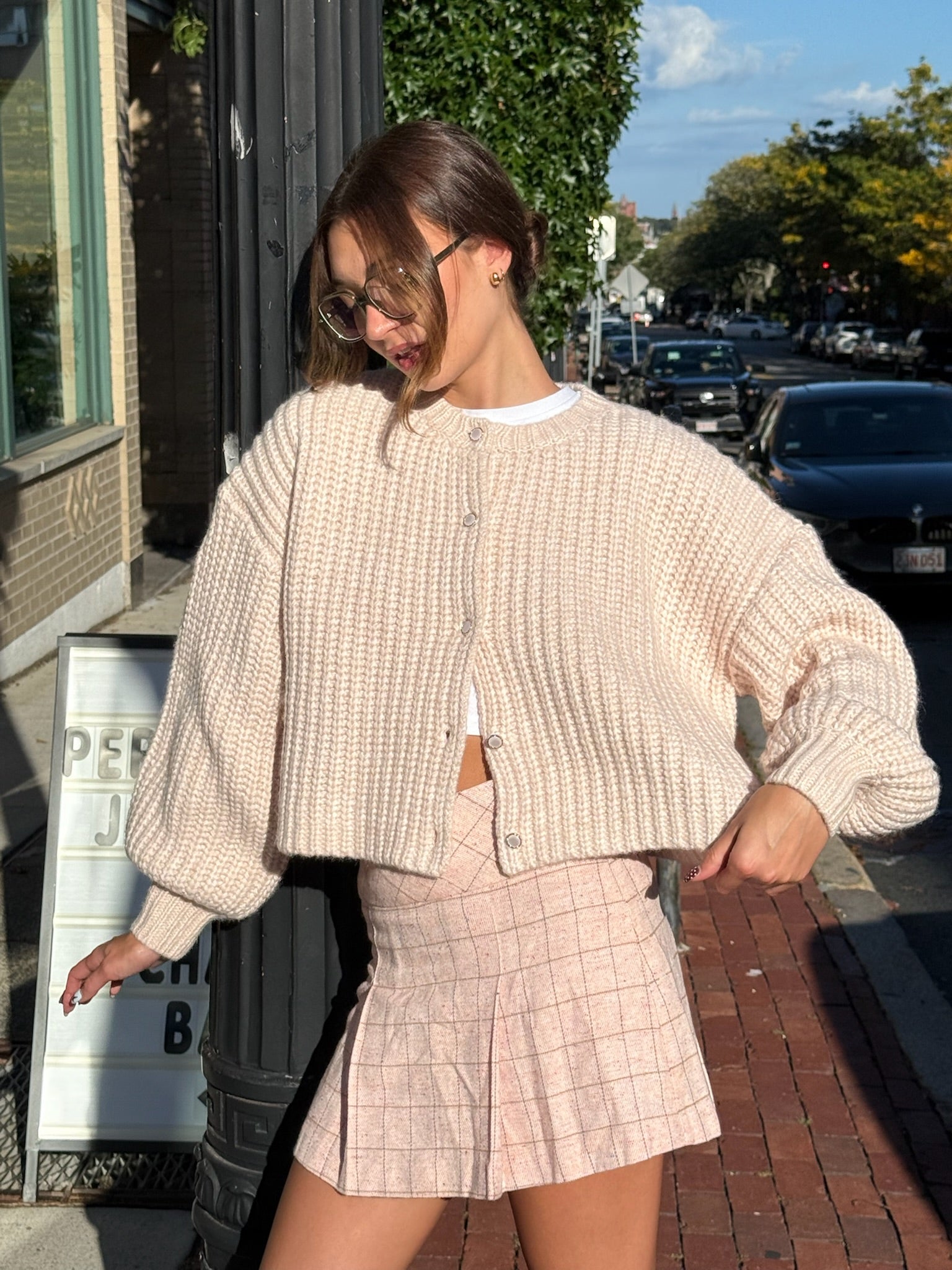 The MINKPINK Marlo Cardigan is a soft, chunky knit with a relaxed, cropped fit. Featuring dropped shoulders and tonal buttons, it’s the perfect throw-on layer for effortless, everyday style.