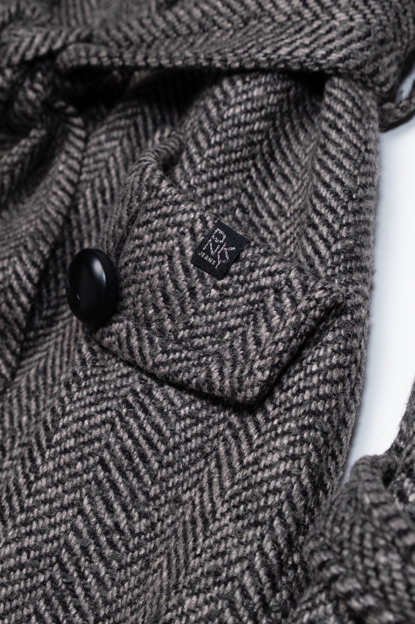 A tailored herringbone coat from DKNY Jeans features a self tie waist, soft faux-fur collar, and oversized buttons. She's giving Gossip Girl first season.